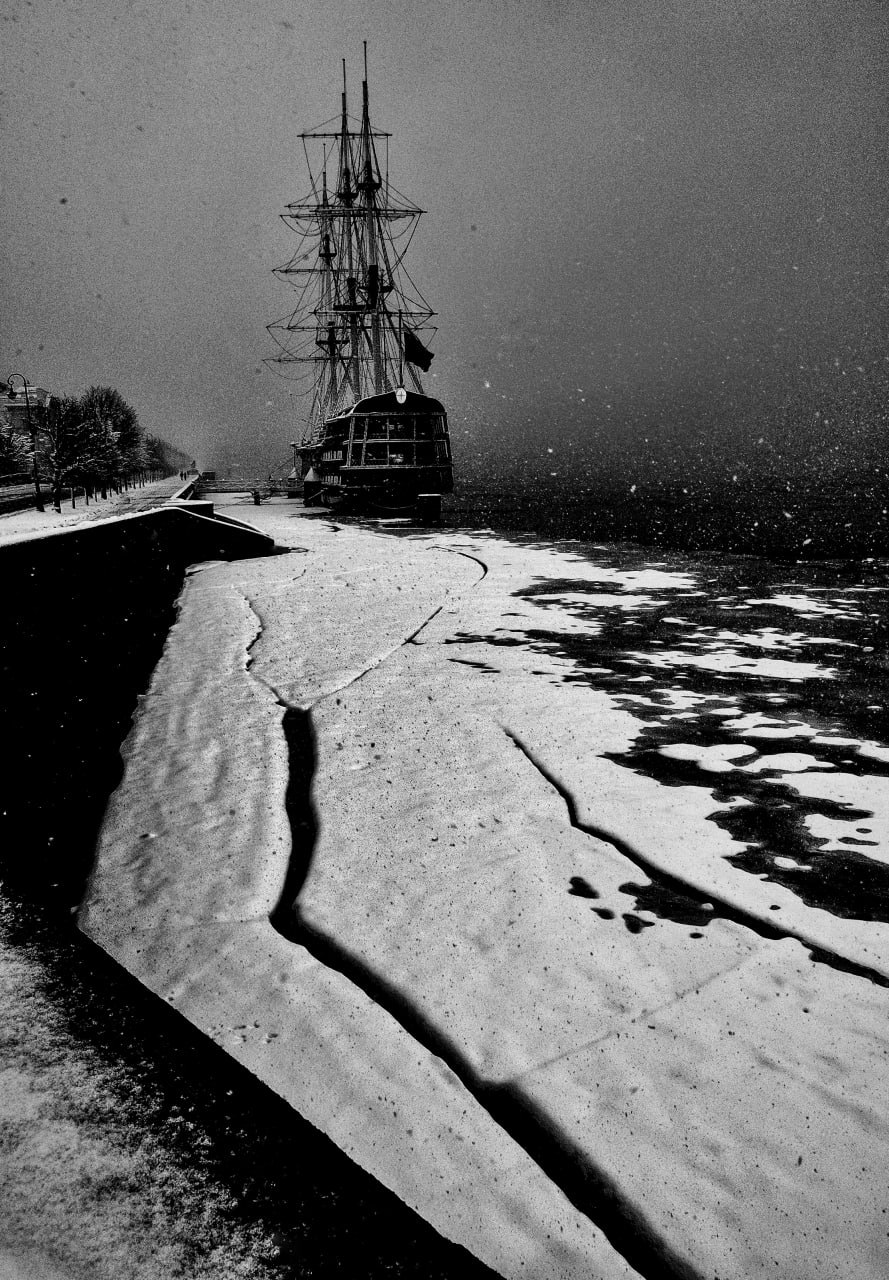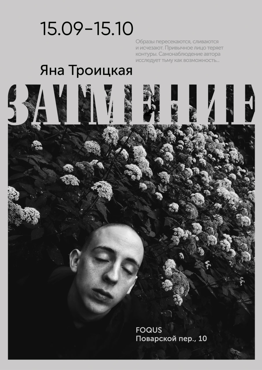 Яна Троицкая переносит это ощущение в чёрно-белую фотографию: образы пересекаются, сливаются и исчезают, лица теряют контуры. Темнота становится переходом к чему-то новому.