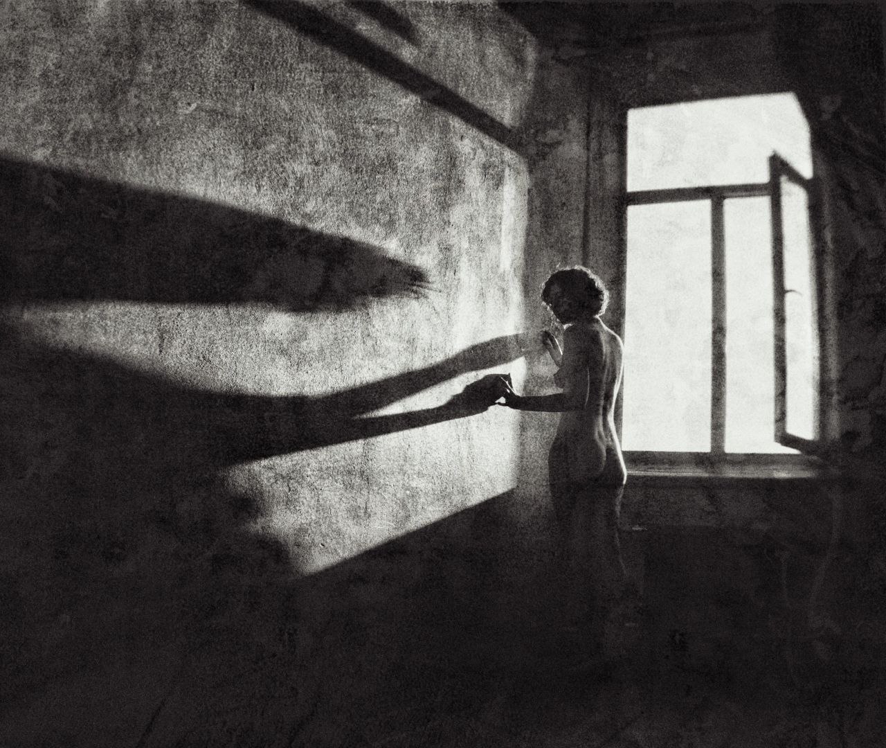 Автор исследует экзистенциальные вопросы и тонкую грань между реальностью и сном. Мягкие тона, светотень и выразительные позы создают атмосферу напряжённой загадочности, вызывая глубокое переживание и приглашая зрителя к уникальной, личной интерпретации.