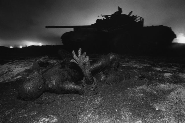 Кувейт. Рядом с танком, подбитым во время американской бомбардировки с воздуха, тело мертвого иракского солдата.[/caption] [caption id="attachment_9789" align="alignnone" width="650"]