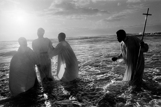 Южная Африка. Кейптаун. Каждое воскресенье на рассвете священники Сионской церкви из черного поселка Хайелитше принимают новообращенных в веру через омовение в море. 1999.[/caption] [caption id="attachment_9781" align="alignnone" width="650"]