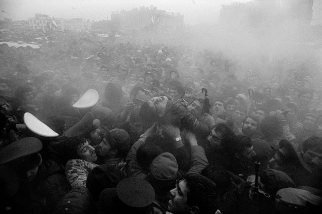 Северная Ирландия, Белфаст. Стена осыпается после поджога, предположительно организованного ирландской республиканской армией.[/caption] В промежутке между 1978 и 1980 годами Аббас снимает революцию в Иране, к которой он возвращается, спустя почти десятилетие, - в 1997 году. Его книга 'Иранский Дневник', которую он писал и снимал с 1971 по 2002 годы, - его собственная критическая интерпретация истории этого государства в фотографиях и дневниковых заметках, которые он делал, находясь в Иране. [caption id="attachment_9785" align="alignnone" width="650"]