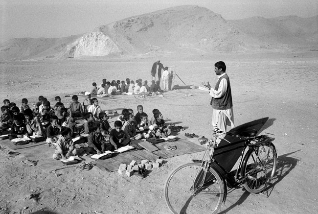 Афганистан. Занятия проводятся на открытом воздухе из-за отсутствия места в сельской школе.[/caption]