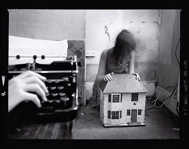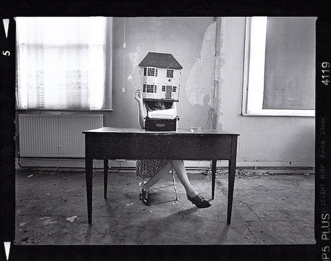 'День, проведенный дома' (A Day at Home) - серия черно-белых пленочных фотографий Шарлотты Колберт (Charlotte Colbert). В этой серии она исследует отношения вымышленного мира и реальности на фоне жилого или некогда жилого пространства. Проводя параллели между писателем и домохозяйкой, она размывает и объединяет эти два образа с помощью дома, 'порой такого загадочного и сюрреалистичного, а порой запирающего тебя внутри как тюрьма', - говорит Шарлотта. В своих черно-белых среднеформатных кадрах Шарлотта использует двойные экспозиции и длинные выдержки, кривые зеркала и другие необычные реквизиты, чтобы показать иные вымышленные миры, которые так часто сопутствуют нашей повседневной жизни. Серия снята в заброшенном доме в Бетнал Грин, а руины стали еще одним персонажем истории, темным и таинственным местом, откуда не удастся так просто сбежать.