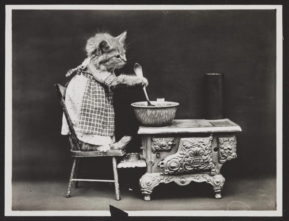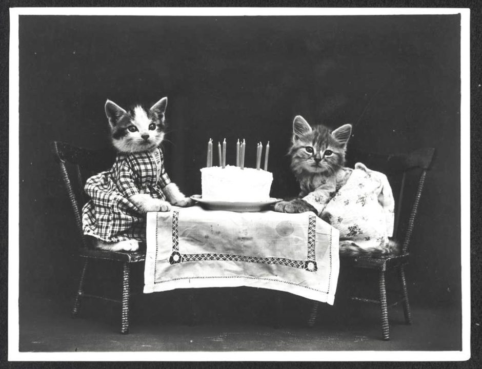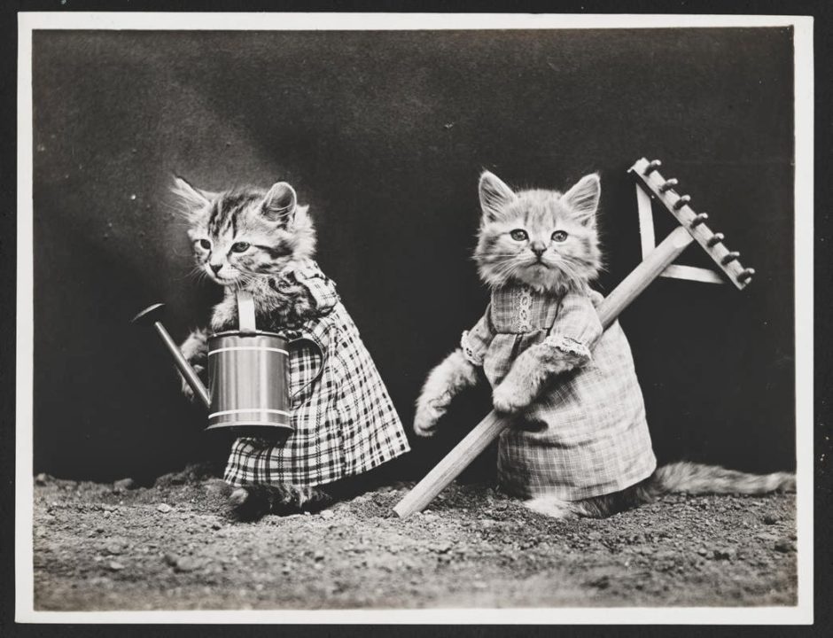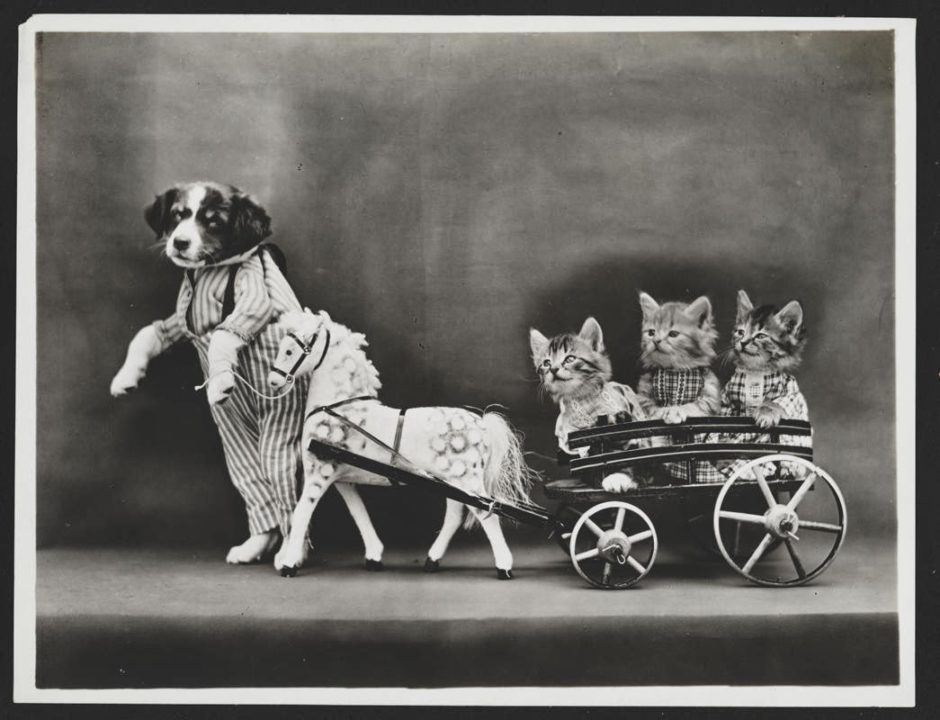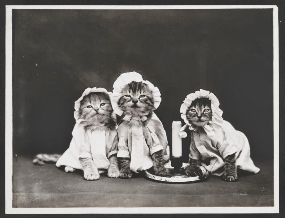 Эти фотографии были сделаны в начале 20-го века американским фотографом Гарри Уиттье Фрисом (Harry Whittier Frees) (1879-1953), который, одевая своих котят, Рэгса и Пушистика, а также других домашних животных (собак, свиней, кроликов и птиц) своих друзей и соседей, фотографировал их в человеческих позах, за вполне обычными человеческими занятиями.