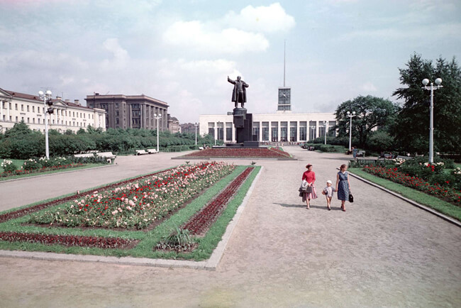 Илья Наровлянский 'Вид на памятник Ленину и Финляндский вокзал' Ленинград, 1960‑е