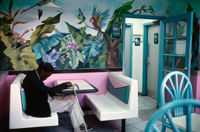 При создании работ для обеих частей книги American Color Константин Манос (Constantine Manos), фотограф агентства Magnum Photos, использовал любимую Leica и цветную фотоплёнку Kodachrome 64. Серия American Color 1, снятая между 1982 и 1994 годами, стала первой цветной серией фотографа. На протяжении всей своей карьеры до этого он фотографировал только на чёрно-белую плёнку и, собственно, стал любим и знаменит именно благодаря чб. По словам фотографа, на момент создания первого 'Американского Цвета' у него было что-то вроде кризиса, когда он не знал, куда ему двигаться дальше в своём творчестве. В то время он понял, что больше не может заниматься чёрно-белой фотографией и начал искать непривычные для себя сюжеты. Так, в течение нескольких лет, между коммерческими съёмками, в путешествиях, на различных публичных событиях, на 'общественной территории' ('public domain'), как он сам любит выражаться, фотографируя средний класс американцев впервые на цветную плёнку, Коста нащупал новый язык своего визуального выражения. Впоследствии появившаяся вторая часть American Color 2 датируется уже 2010 годом и, по словам самого автора, появилась только благодаря тому, что ему так понравилась работа над первой частью, что он просто не смог остановиться. Публикуем некоторые фотографии из книг American Color с сайта Константина Маноса, где вы можете прочитать о нём, его пути в фотографии, отношении к отпечаткам и посмотреть множество других его проектов.