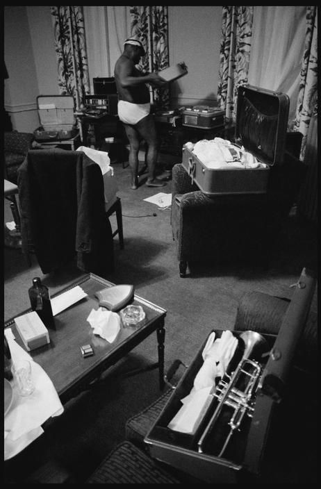 США. 1958. Луи АРМСТРОНГ, трубач, певец, композитор и руководитель оркестра, в отеле.[/caption] [caption id="attachment_20937" align="alignnone" width="560"]