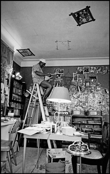 США. Квинс, Нью-Йорк. 1958. Луи АРМСТРОНГ дома в Короне. Гордостью дома Армстронга является его коллекция фотографий и вырезок, размещенных не только на стенах его комнаты, но и на потолке. Он объясняет: «Я видел Сикстинскую капеллу».[/caption] [caption id="attachment_20936" align="alignnone" width="560"]