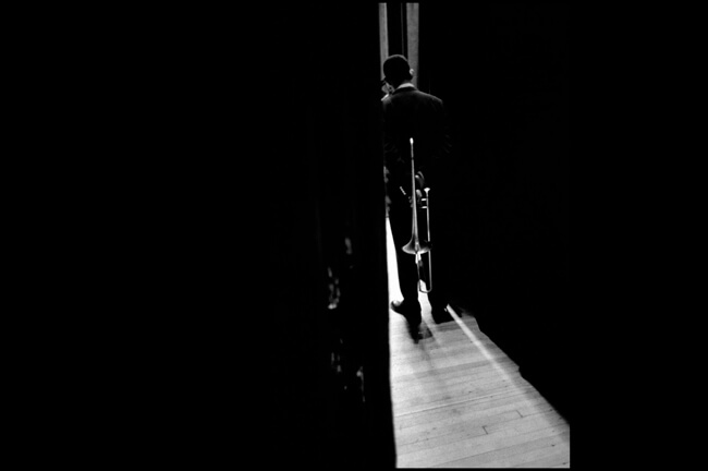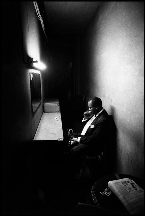 США. 1958. Филадельфия, Пенсильвания. Луи Армстронг. Последняя минута концентрации за кулисами перед появлением на публике.© Dennis Stock/Magnum Photos.[/caption] Однако сначала Стоку нужно было завоевать доверие музыкантов, которые не сразу приняли присутствие постороннего. Постепенно по мере того, как он всё больше погружался в сообщество, 'их реакции менялись от подозрительности к узнаванию, любопытству и, наконец, дружелюбию'. Хотя его присутствие в качестве фотографа сопровождалось определенными оговорками: 'Мне позволяли работать с условием, что моя работа не будет мешать их собственной. Часто приходилось буквально ловить момент в напряженном музыкальном дне. Но и момента может быть достаточно'. [caption id="attachment_20948" align="alignnone" width="650"]