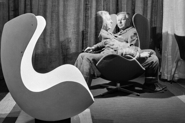 Арне Якобсен в своем кресле "Яйцо" Egg