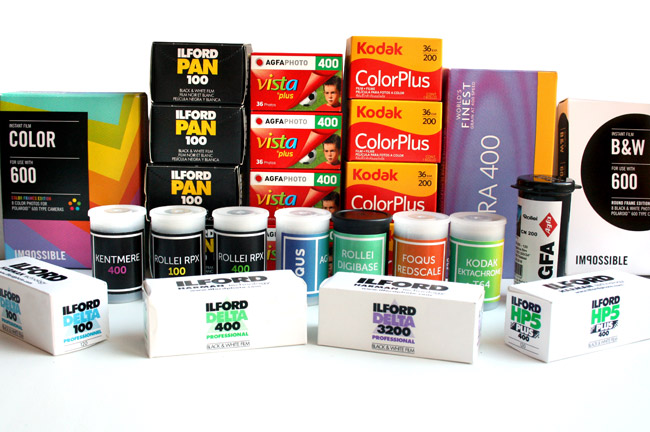 Redscale 100, традиционная подборка черно-белой пленки 35мм нашей намотки, в том числе Kentmere 400 и хороший выбор среднеформатной пленки, цветной и черно-белой.