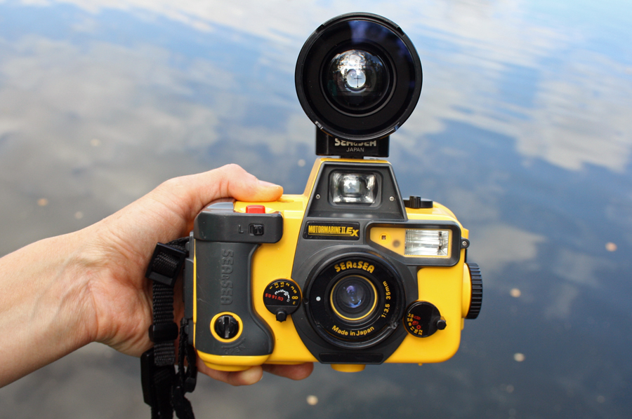 Motor Marine II - EX - водонепроницаемая 35мм пленочная камера, впервые выпущенная японским производителем подводного фотооборудования Sea & Sea в 1989 году. Это настоящее земноводное, которое может снимать как на суше, так и под водой. Камера оснащена широкоугольным объективом 35мм, а также встроенной внутрь корпуса линзой для съемки с близких расстояний (от 50см), которая встает нужным образом внутри камеры при выборе соответствующего режима. Motormarine II оснащена встроенной вспышкой (не под контролем ttl), предназначенной для съемки на расстоянии более 3 метров. Также камера продается с полным комплектом.