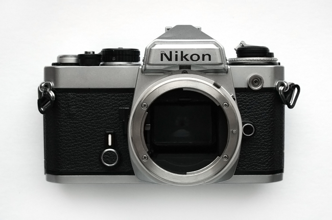 Nikon FE - пленочные зеркальные фотоаппараты, производившиеся в Японии с 1978 по 1983 годы. Компактная зеркальная камера для любителей и продвинутых любителей пленочной фотографии. Электромеханический ламельный затвор, широкий диапазон выдержек от 1/1000 до 8 секунд (если батарейка садится, то отрабатывается одна механическая выдержка - 1/90 секунды), большой светлый видоискатель с микрорастром и клиньями Додена. У плёночного фотоаппарата
