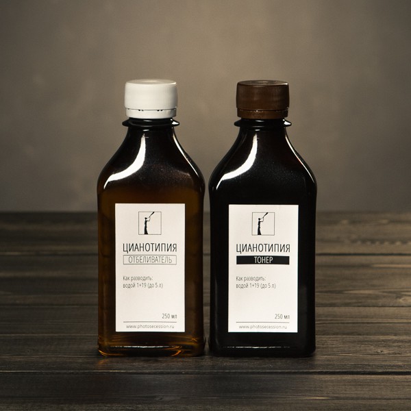 Набор для тонирования цианотипии. Дает большое многообразие оттенков от сине-розового до сепии в зависимости от степени отбеливания и времени обработки.